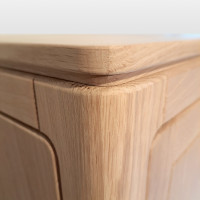 Onze meubelen krijgen de afwerking die eikenhout nodig heeft, een beits en een dubbele laklaag. Veel onderhoud is er verder niet nodig. Indien u stof wegneemt doe je dit best met een droge of een lichtvochtige doek. Omwille van de open poriën kan het overvloedig gebruik van water de laklaag aantasten (wordt van onderuit losgedrukt) of er verschijnen witte vlekken. Bij intensiever reinigen, het teveel aan vocht onmiddellijk verwijderen.